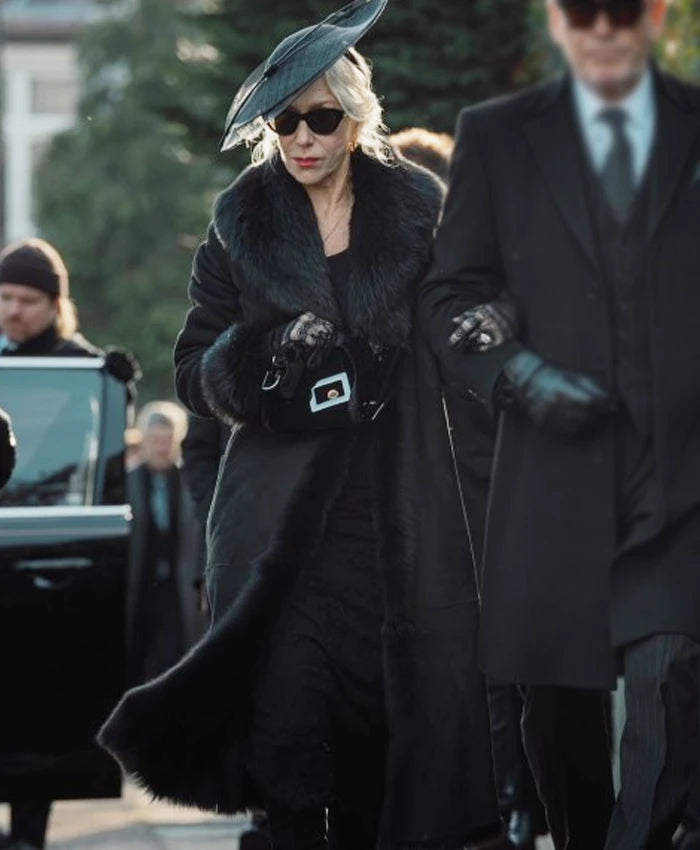 Helen Mirren MobLand 2025 Maeve Harrigan Black Suede Leather Coat