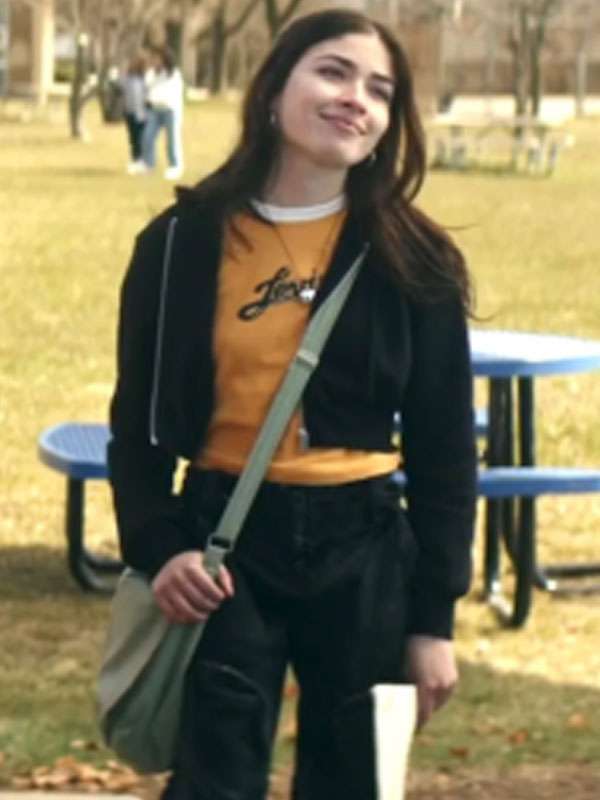 Channel the bold streetwear vibe of Caitlyn Torres with the Melissa Collazo Motorheads Black Cropped Jacket. Inspired by the fan-favorite character from the series, this fleece jacket pairs warmth with style. It features a soft viscose lining, a convenient zipper closure, and a hooded collar for casual flair. The cropped cut adds a fashionable edge, while the practical pockets make it perfect for everyday wear. Whether you're out on the town or relaxing with friends, this jacket blends comfort and attitude effortlessly.