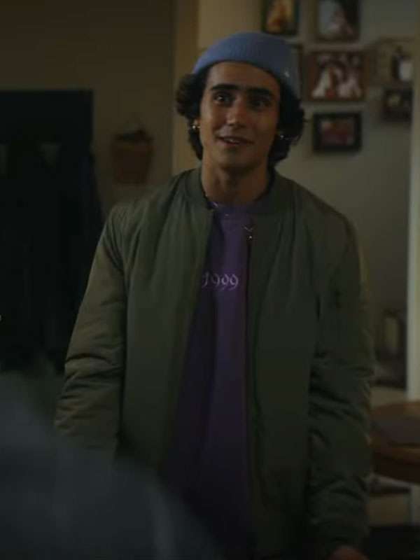 Inspired by Michael Cimino’s character Zac Torres from Motorheads, this green bomber jacket is crafted from durable parachute fabric with a soft viscose lining. It includes a zipper closure, ribbed collar and cuffs, and practical pockets—two at the front and two inside—for a blend of comfort and utility.