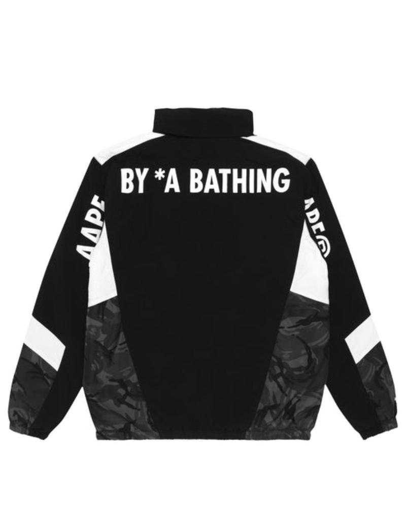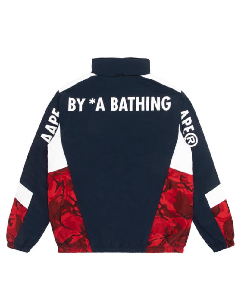 The AAPE Black and Red Jacket combines style and comfort with its polyester fabric construction and soft viscose lining. Featuring a stand-up collar, ribbed cuffs, and a full-zip front closure, this jacket offers both fashion and functionality. It showcases the AAPE signature branding/logo on the chest, adding a touch of streetwear flair. With two side waist pockets for convenience, this jacket ensures a regular fit for all-day wear.