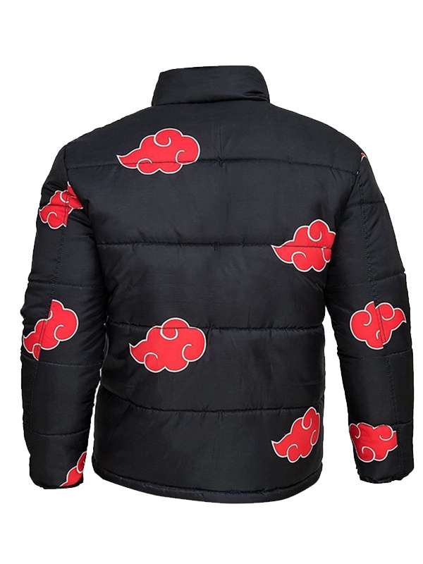 Embrace the dark, mysterious aura of the Akatsuki with this black puffer jacket inspired by the iconic anime, Naruto. Made with durable parachute fabric and featuring a stand-up collar, this jacket offers both style and comfort. The full-length sleeves, two front pockets, and two inner pockets make it as practical as it is stylish. Whether you're a fan of the series or just appreciate sleek, functional outerwear, this jacket is a must-have.