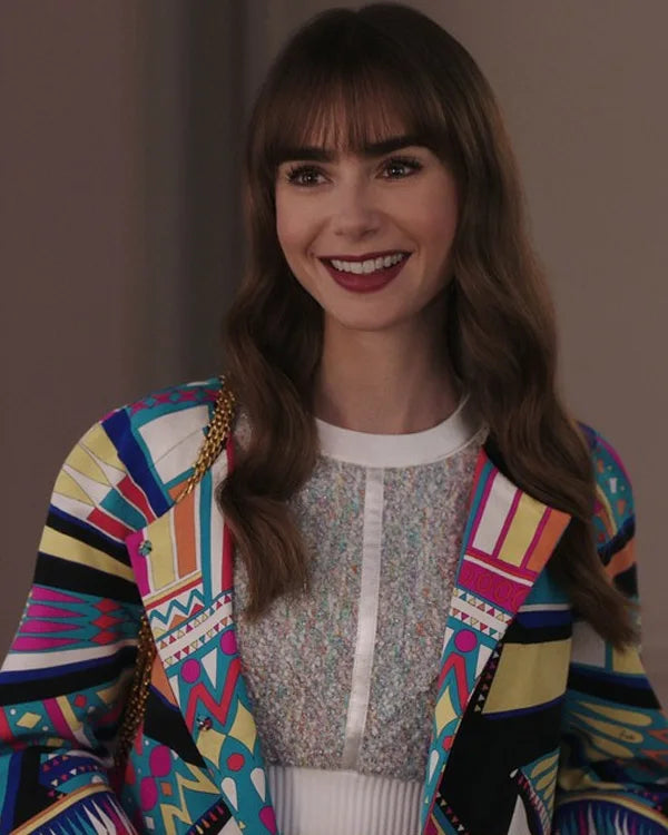 Step into the world of fashion with the Emily in Paris Season 3 Lily Collins Designed Printed Blazer. Crafted from high-quality suiting fabric, this women’s blazer combines elegance and style effortlessly. The inner viscose lining ensures a comfortable fit, while the lapel collar and open hem cuffs add a sophisticated touch. Featuring two side pockets and two inner pockets for practicality, this blazer is perfect for both casual outings and formal events. Embrace your inner Emily and elevate your wardrobe with this stunning piece!