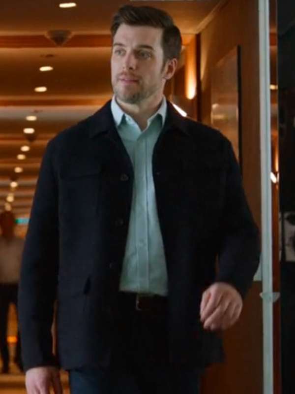 Introducing the Love On The Danube Royal Getaway Black Puffer Jacket, inspired by Dan Jeannotte's character Joe Fisher in the 2024 movie. This stylish jacket is perfect for keeping warm while making a fashion statement.