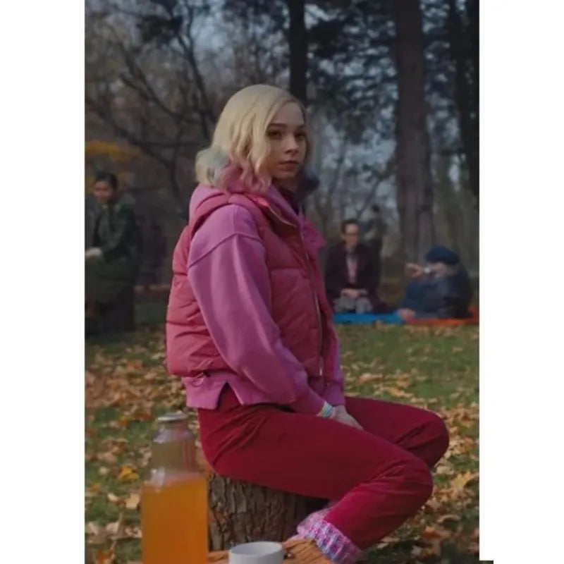 Wednesday 2022 Emma Myers Enid Sinclair Pink Puffer Vest