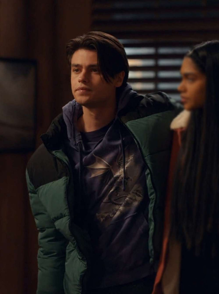 Embrace style and comfort with the Marcus Baker Puffer Jacket, inspired by Felix Mallard in *Ginny & Georgia*. This puffer jacket features a modern black and green color scheme, making it perfect for any casual outing.