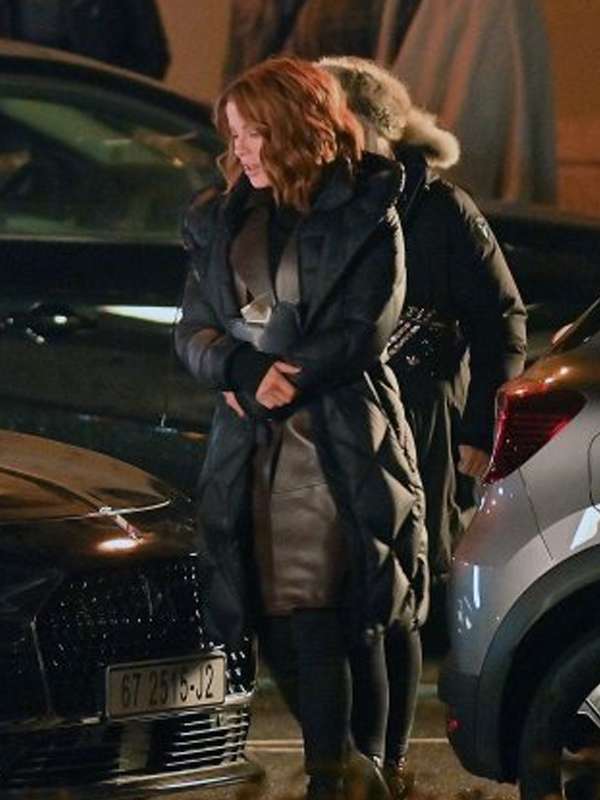 Kate Beckinsale Canary Black 2024 Puffer Coat
