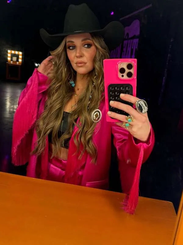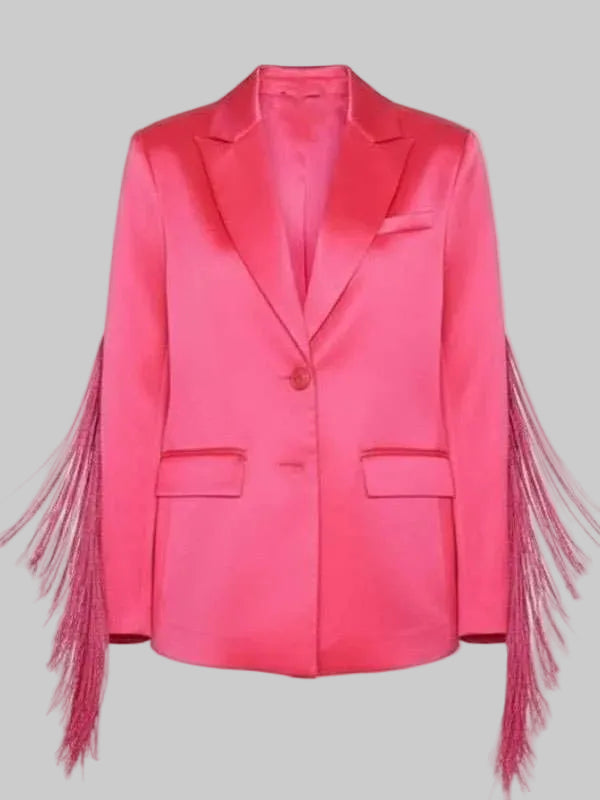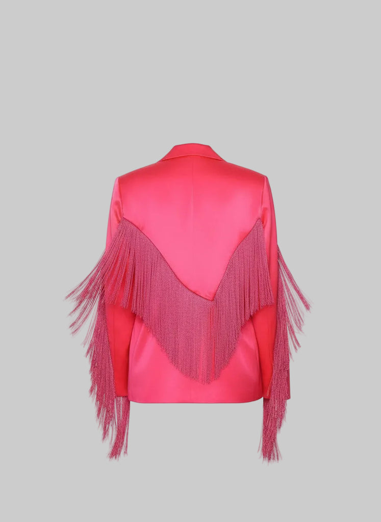 The Road S01 Britnee Pink Satin Fringe Blazer