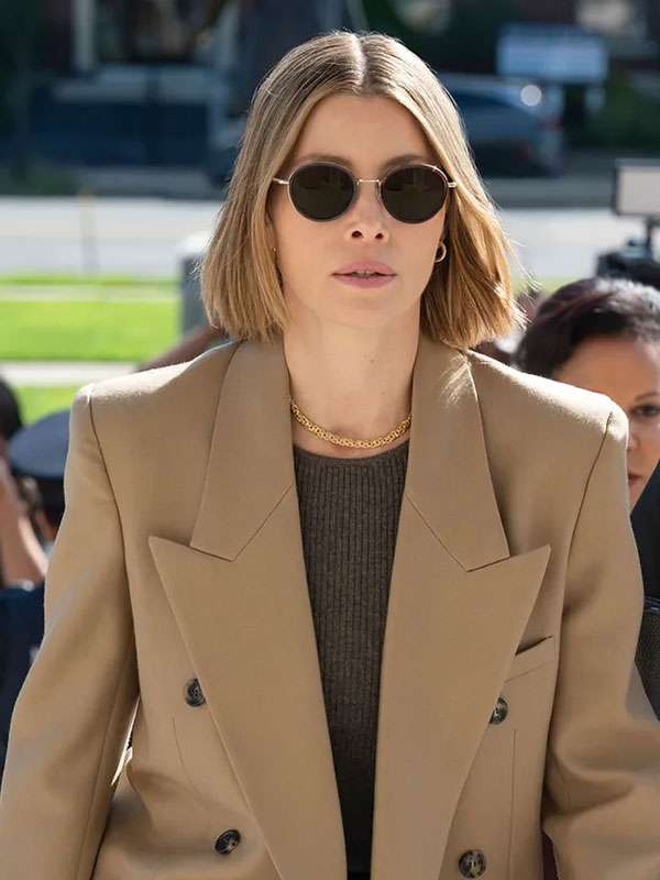 Step into sophisticated style with the Jessica Biel Brown Coat from *The Better Sister*. Inspired by her character Chloe, this classy coat is crafted from fine suiting fabric and tailored with a double-breasted buttoned front. The lapel collar adds a refined touch, while the viscose lining ensures lasting comfort. Whether you're heading to the office or a casual outing, this brown coat brings a graceful and versatile flair to your wardrobe.