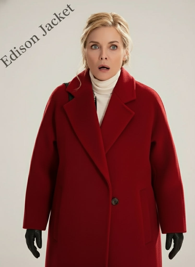 Michelle Pfeiffer Oh What Fun 2025 Claire Red Wool Coat
