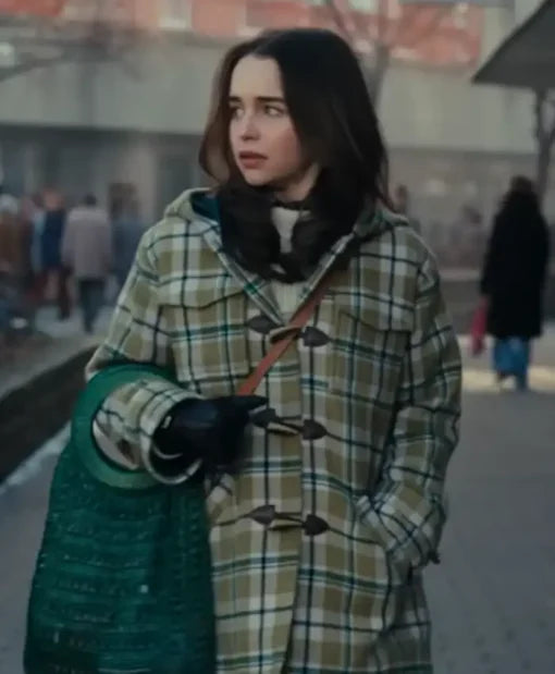 Emilia Clarke Ponies 2026 Bea Plaid Wool Duffle Hooded Coat