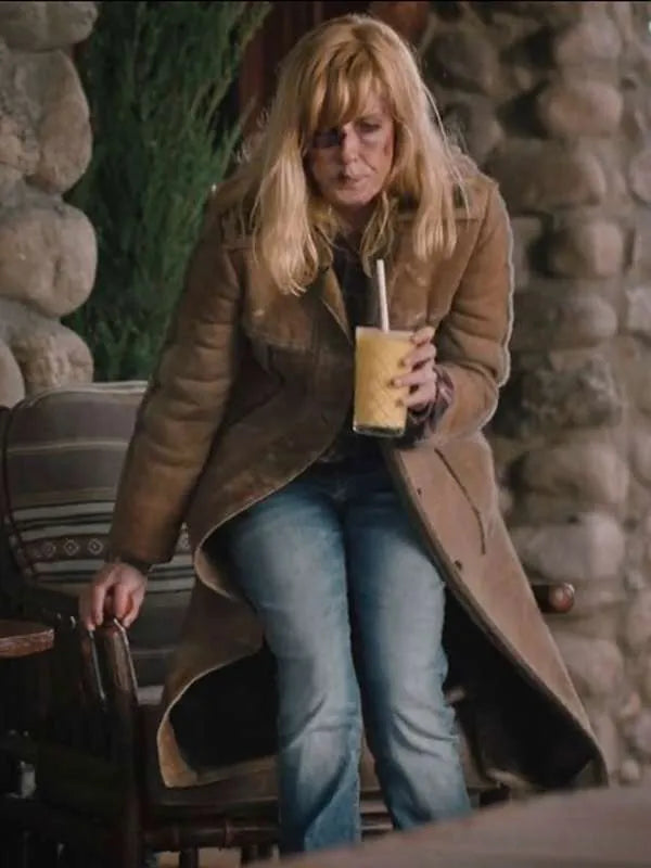 Yellowstone Kelly Reilly Brown Suede Leather Trench Coat