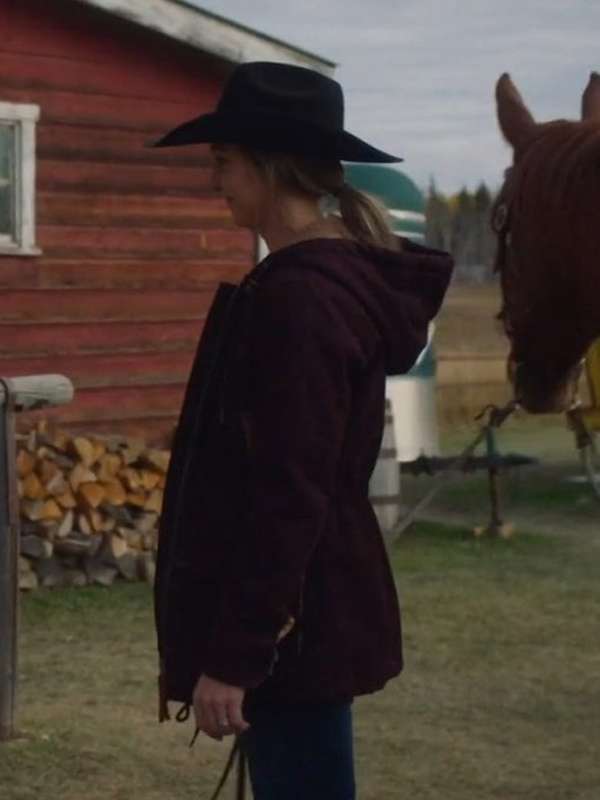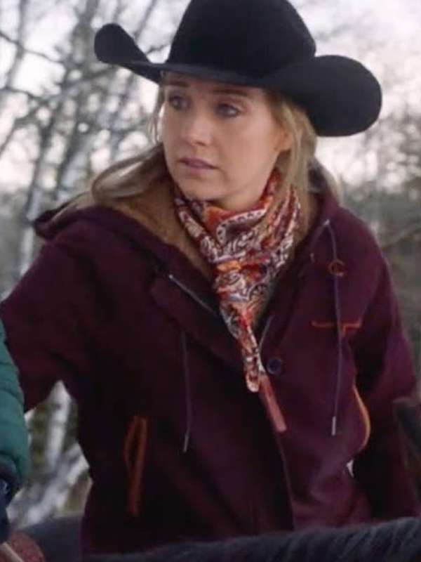 This maroon hooded jacket adds a layer of warmth and style to any wardrobe, perfect for fans of Heartland and lovers of outdoor fashion.