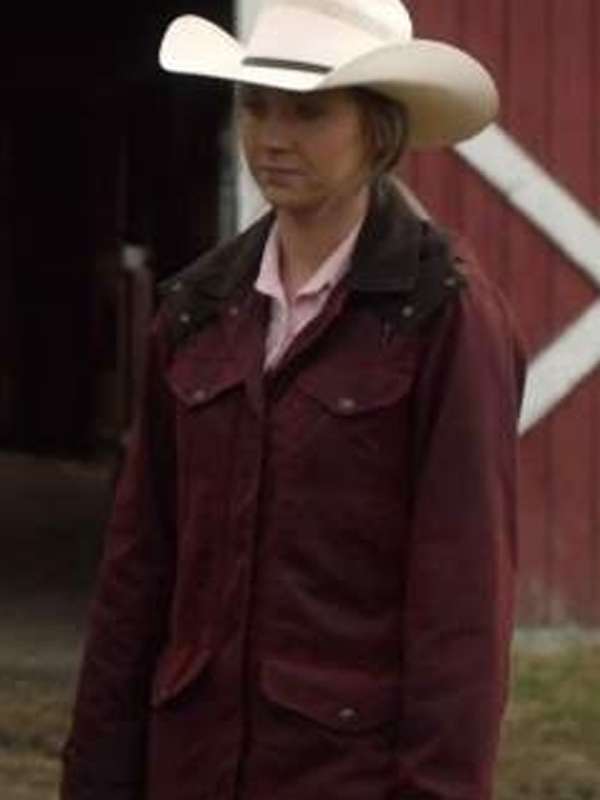 Step into the character of Amy Fleming from *Heartland* with this stunning red hooded jacket, inspired by Amber Marshall. Crafted from high-quality cotton fabric, it features a cozy hooded collar and a combination of zipper and buttoned closure for a stylish look. With two front pockets and one inside pocket, this jacket is both functional and fashionable, perfect for any season.