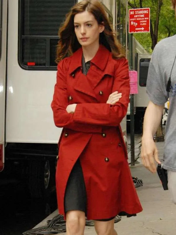 Anne Hathaway NY Street Wear Red Cotton Trench Coat