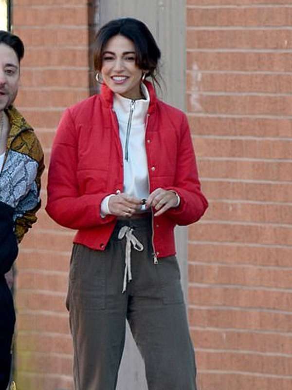 Stand out in style with this vibrant red jacket, inspired by Michelle Keegan as Erin Croft in *Brassic* Season 3.