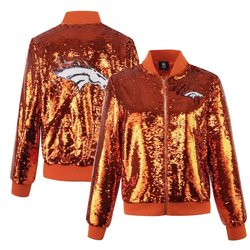 Denver Broncos Orange Sequins Full-Zip Jacket