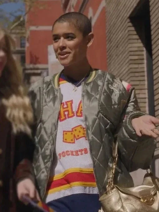 Jordan Alexander Gossip Girl Julien Calloway Green Quilted Bomber Jacket