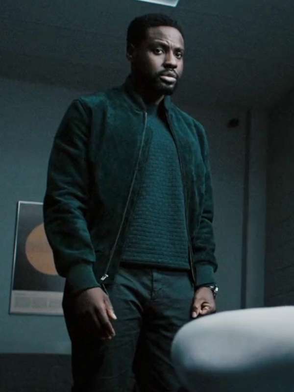 Dayo Okeniyi Dark Matter S01 Leighton Vance Black Bomber Suede Leather Jacket