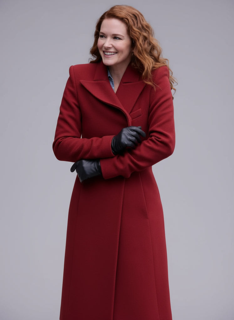 Sarah Murders S01 Emily Lane Red Wool Trench Coat