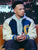 Get the iconic varsity style inspired by Melvin Boomer as Taylor in The Cage Season 1 with this striking blue and off-white jacket.