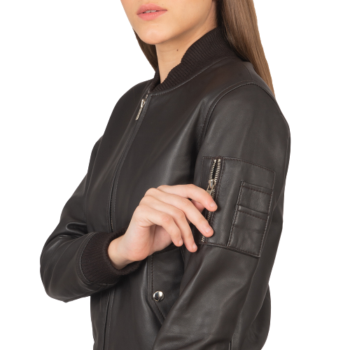 Shane Brown Leather Bomber Jacket Women