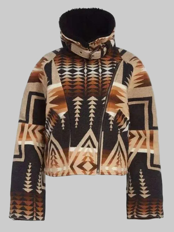 Yellowstone Kelly Reilly Shearling Collar Aztec Jacket